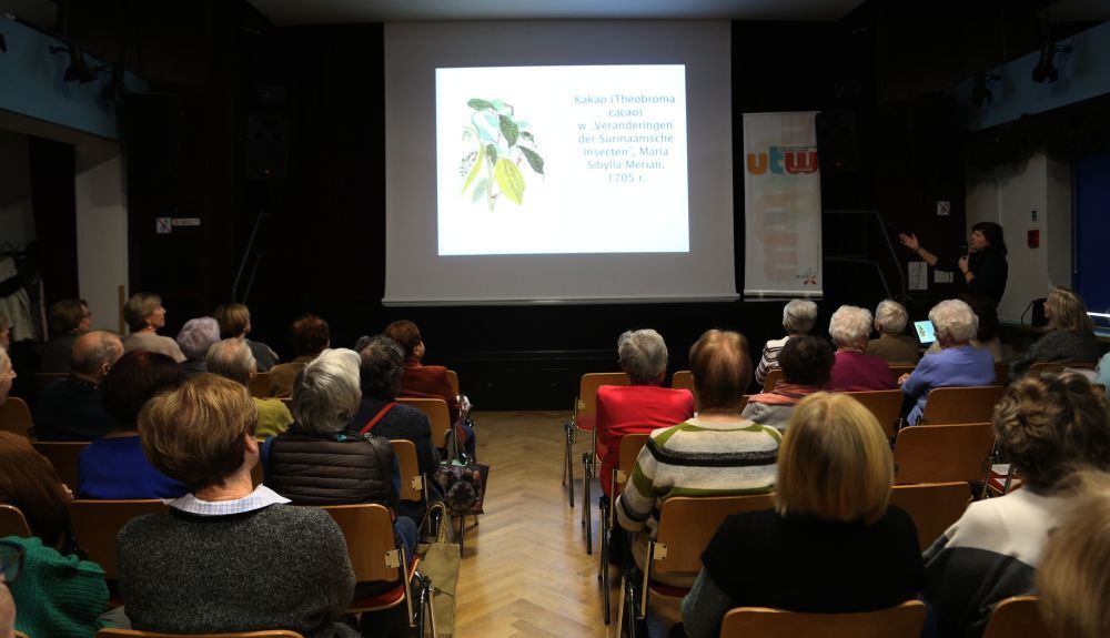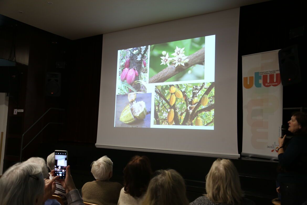 Historię kakao i powstającej z niego czekolady, której początków doszukiwano się na terenach dzisiejszego Meksyku przedstawiła studentkom i studentom UTW Zacisze dr Magdalena Bialic.